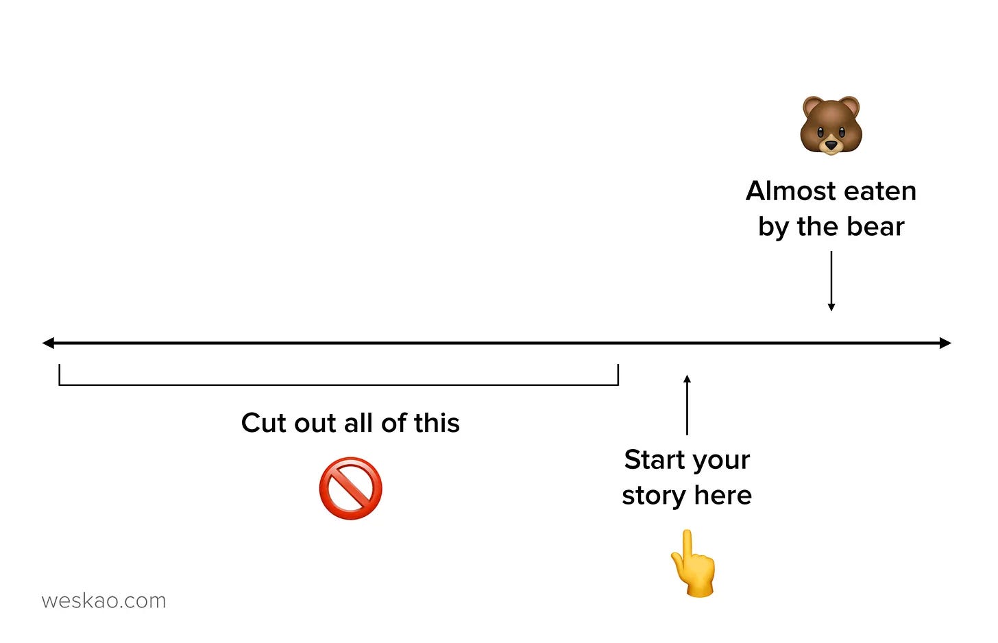 Si vous avez failli vous faire manger par un ours, ne commencez pas par “Je sortais de chez moi et il pleuvait” mais par “En 2020, j’ai failli être mangé par un ours. Voilà ce que j’en ai appris : …”