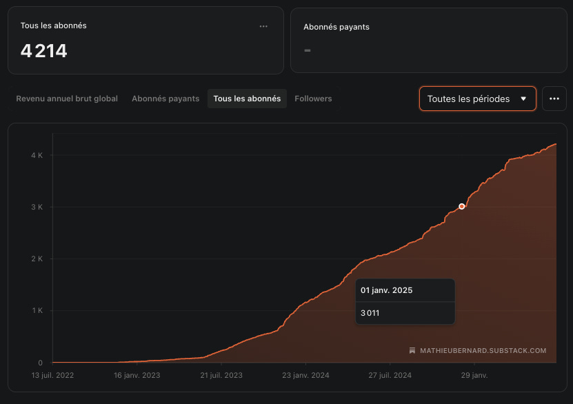 Je n’ai pas fait grandir la communauté de cette Newsletter comme je voudrais (Je voudrais qu’on soit 10000 ici, on est 4212)